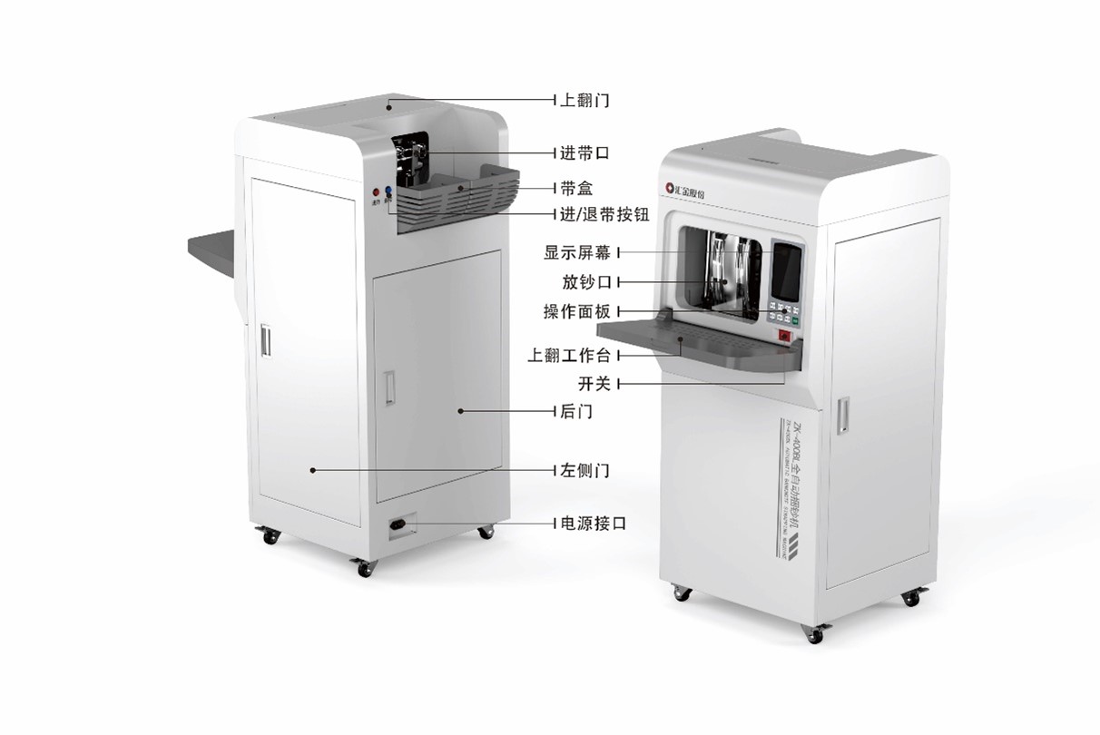 汇金品牌ZK-400BL是一款液晶显示全自动捆钞机。该产品采用独有专利技术,一次压紧完成三道同步捆扎,成型平整,速度更快。在保持产品原有的基本性能上,通过技术升级,采用了独特的任意把捆扎技术,可满足客户对不足十把尾款的捆扎要求。