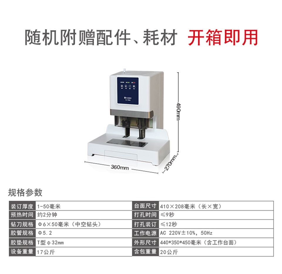 触摸式按键、激光定位、自动打孔/压铆、自动截取装订管,操作轻松、省时省力。
